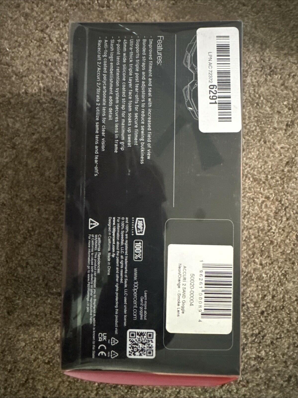 The 100% Accuri 2 Sand Goggles are designed for unisex adults who require protective eyewear during outdoor activities. Featuring a neon orange frame color and smoke lens color, these goggles offer both style and functionality. Manufactured by 100%, a reputable brand in the industry, these goggles are sure to provide the necessary eye protection while keeping you safe and secure during your adventures.