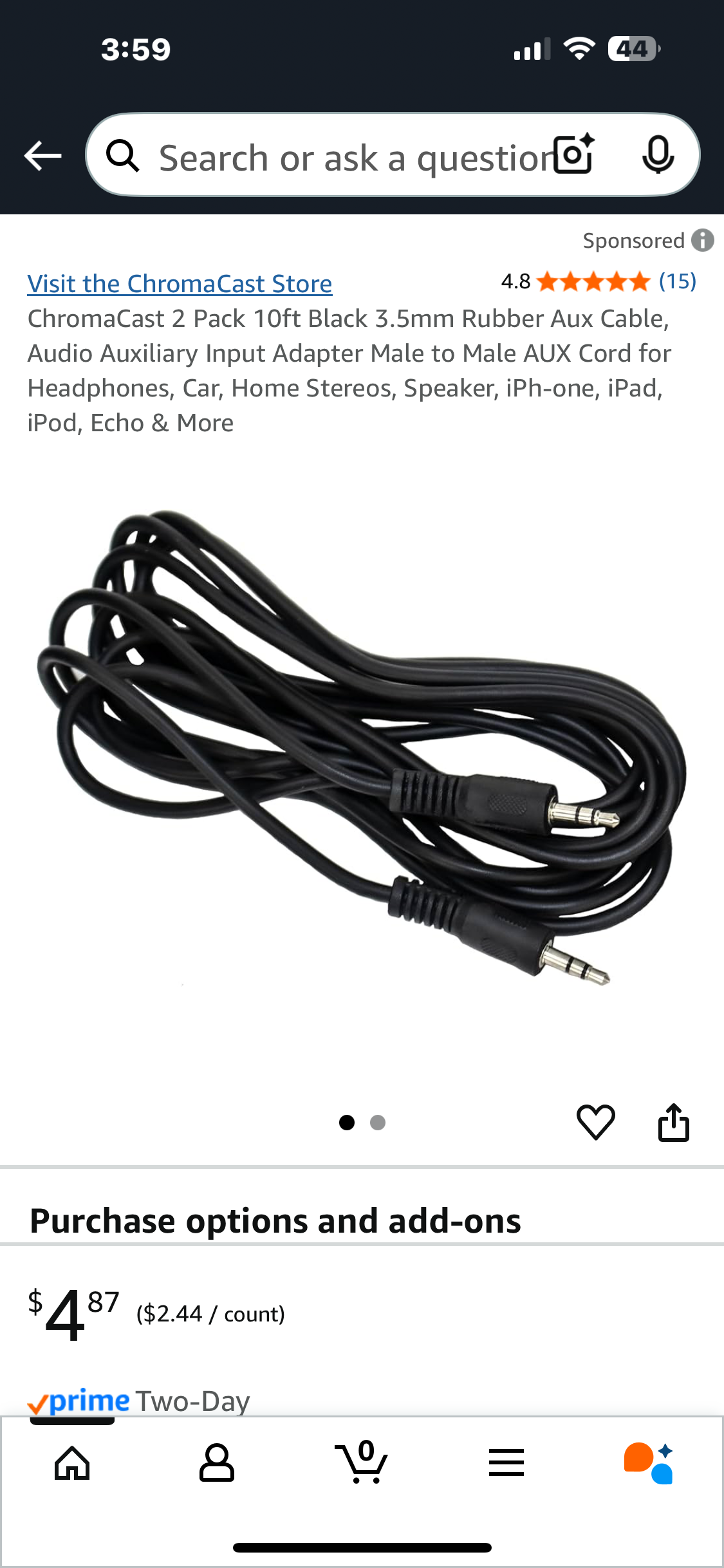 Chromecast two pack 10 foot black 3.5 MM rubber auxiliary cable