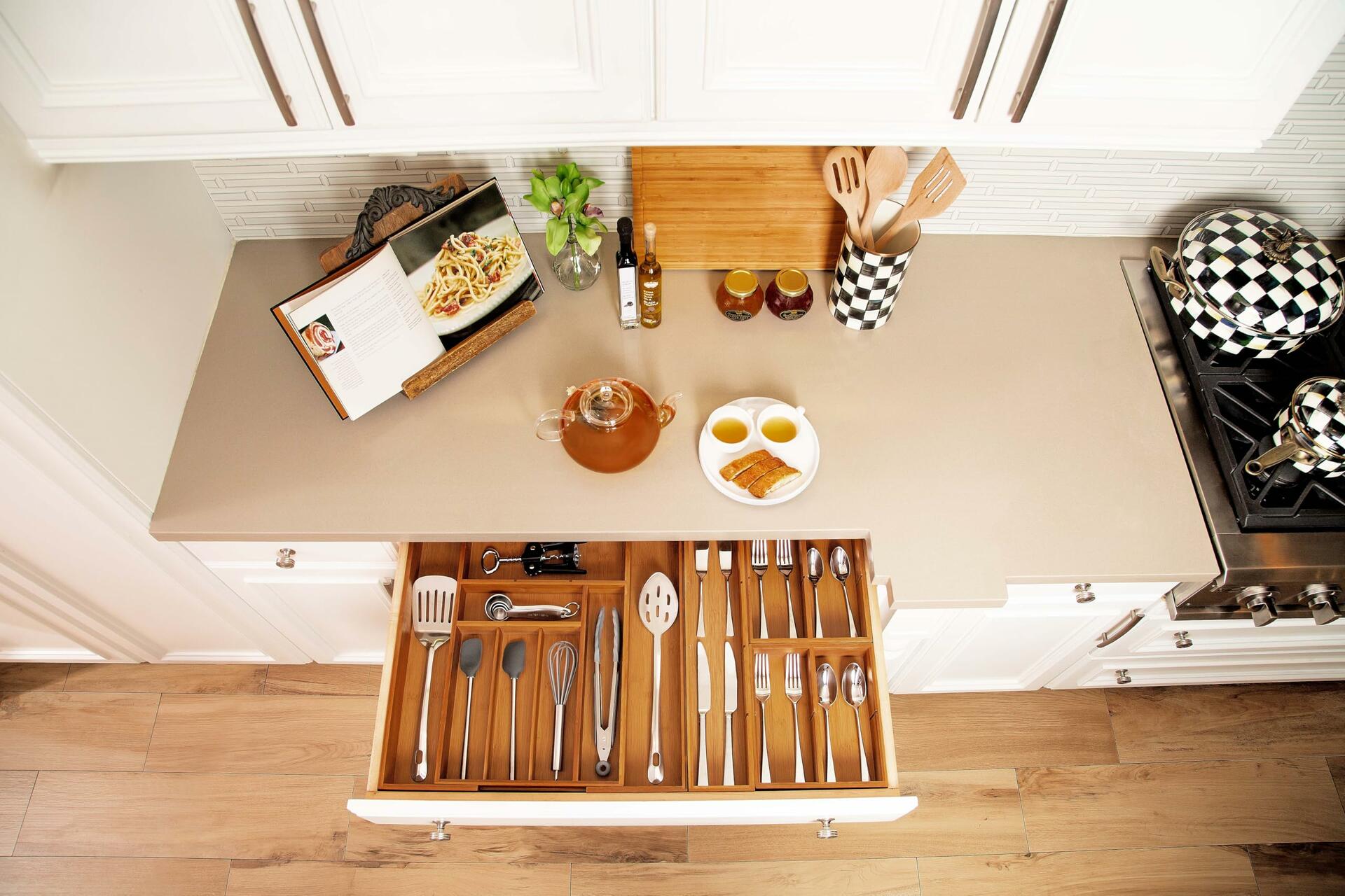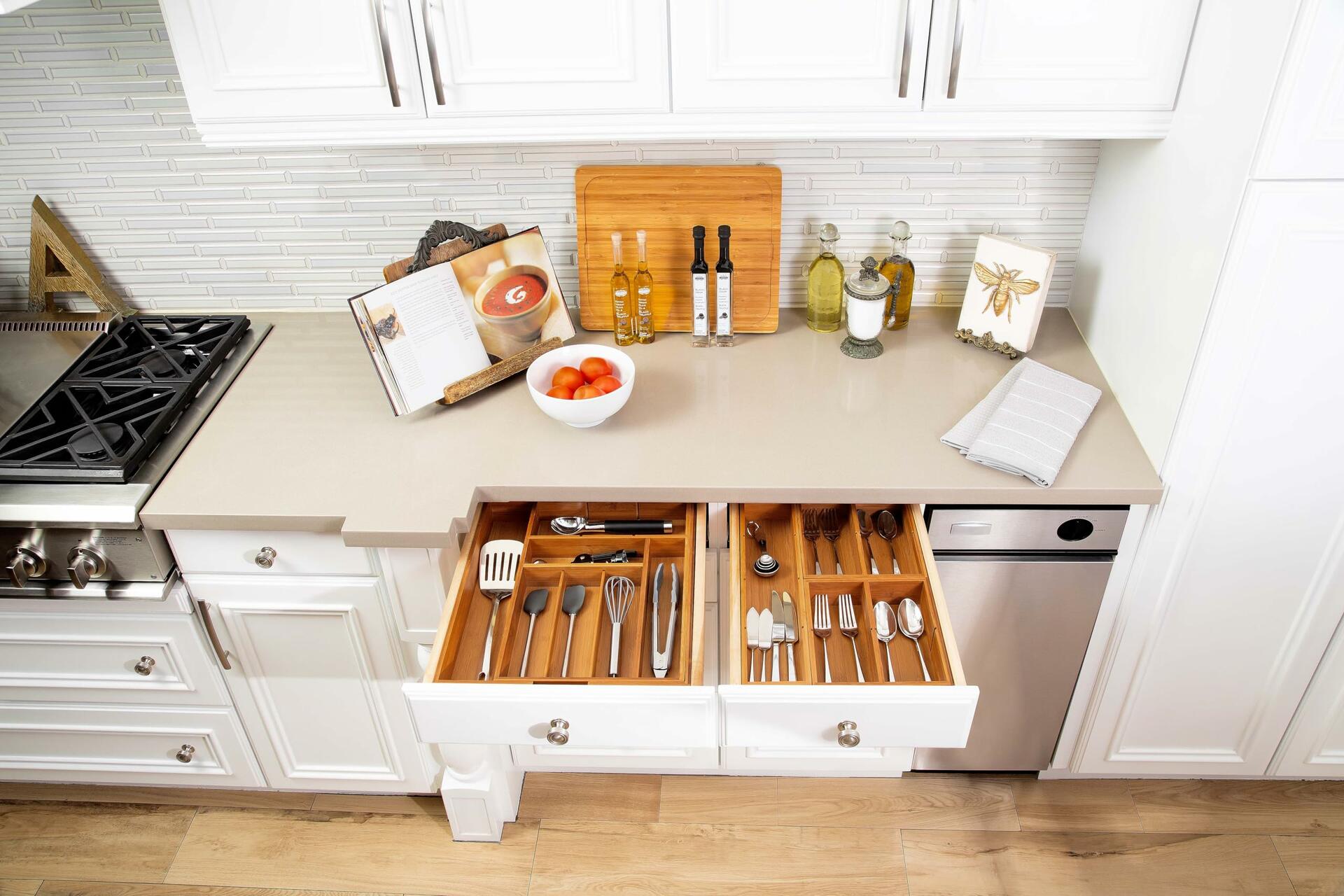 - REMOVABLE DIVIDERS - 9 removable bamboo dividers allow for customizable storage.