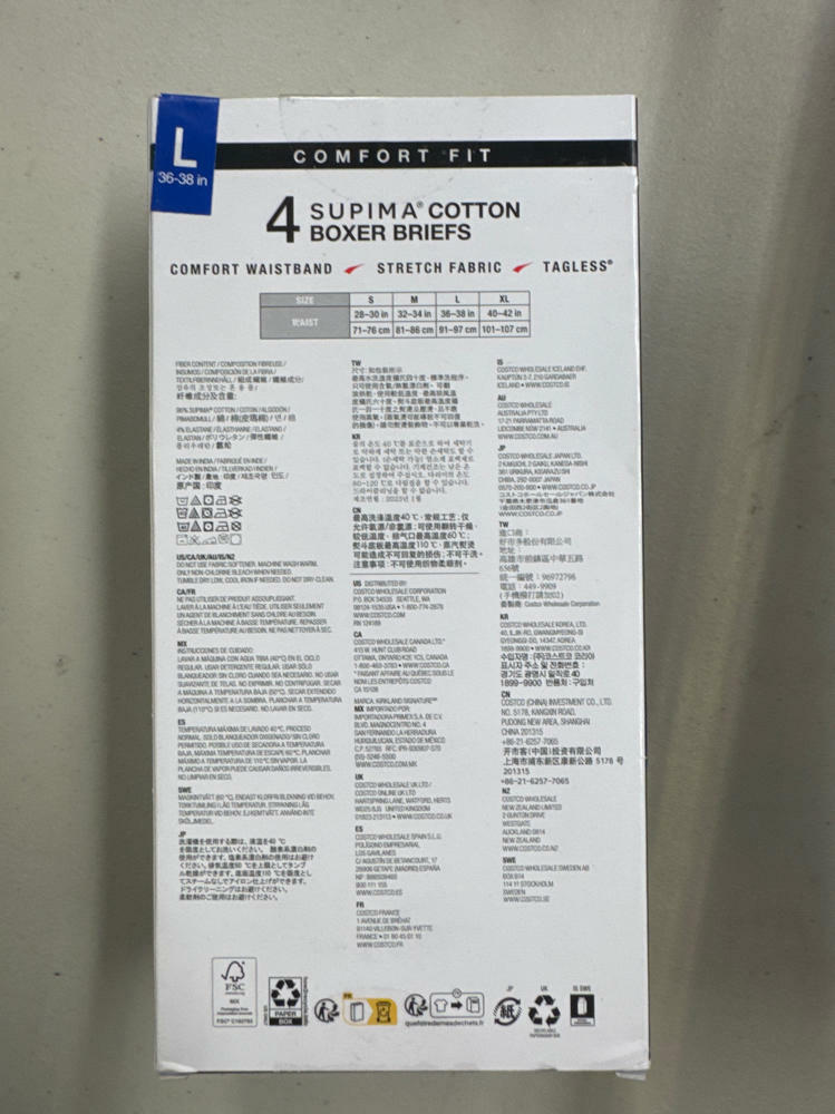 Kirkland Signature Men's Boxer Brief, Large (Pack of 4). Waist size conversion (in): M=32-34 | L=36-38 | XL=40-42 | XXL=44-46.