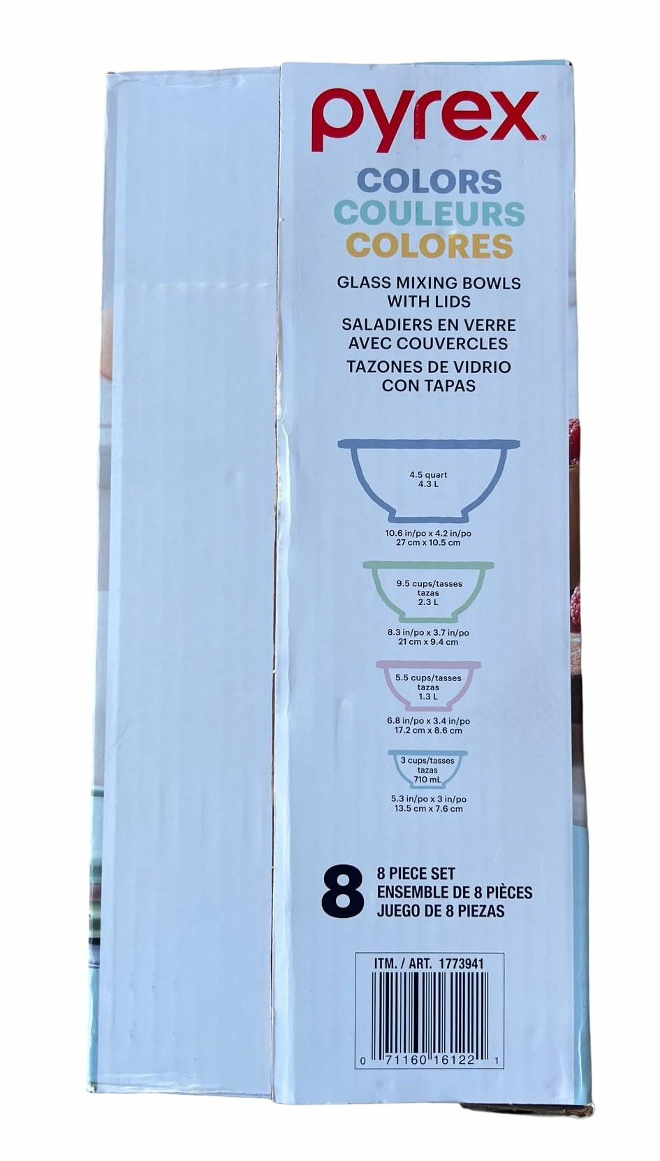 Pyrex Glass Mixing Bowl Set w/Lids, Nesting Storage, Microwave & Dishwasher Safe