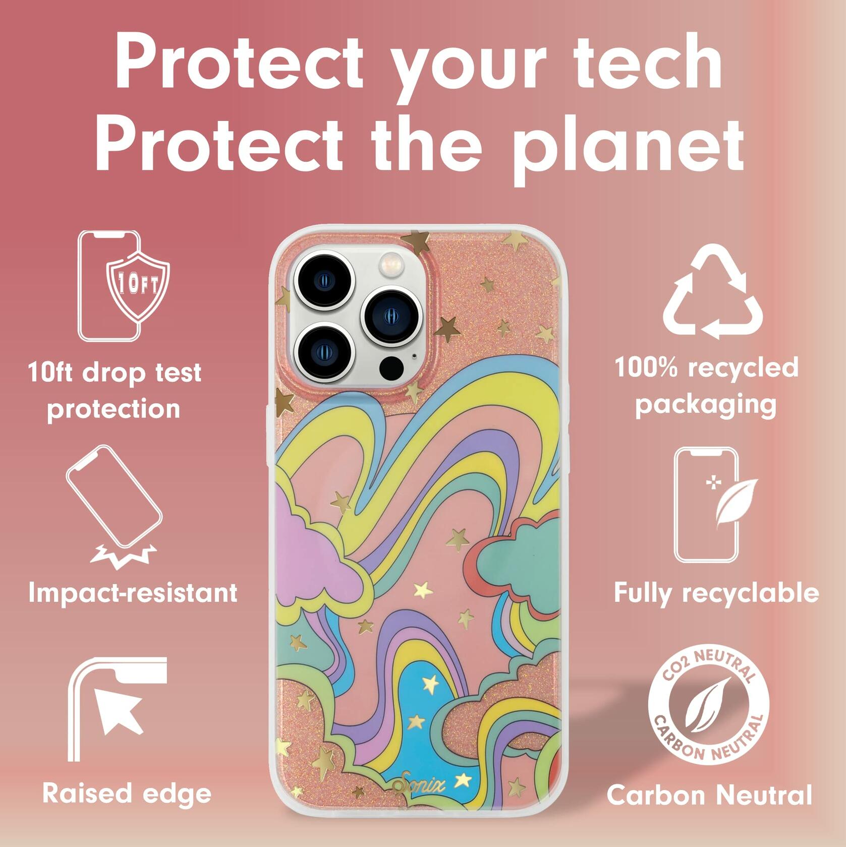 Add some class to your phone with this Sonix compatible with MagSafe iPhone 13 Pro Max protective case! This case also fits the iPhone 12 Pro Max. Enhanced with a scratch-resistant coating and drop test certified up to 10 feet, this phone case with camera protection protects your phone without producing too much bulk. Slim and lightweight without sacrificing protection. This case covers it all! Thin and transparent heavy duty hard outer shell, shock absorbent bumper, and anti-scratch coating. Sonix cases are a girl and her phone's best friend. Made for the woman who wants fashionable technology accessories without having to compromise quality. Pretty patterns, cute prints, and cool trendy aesthetic combined with rugged coverage. Precision crafted for the best fit.