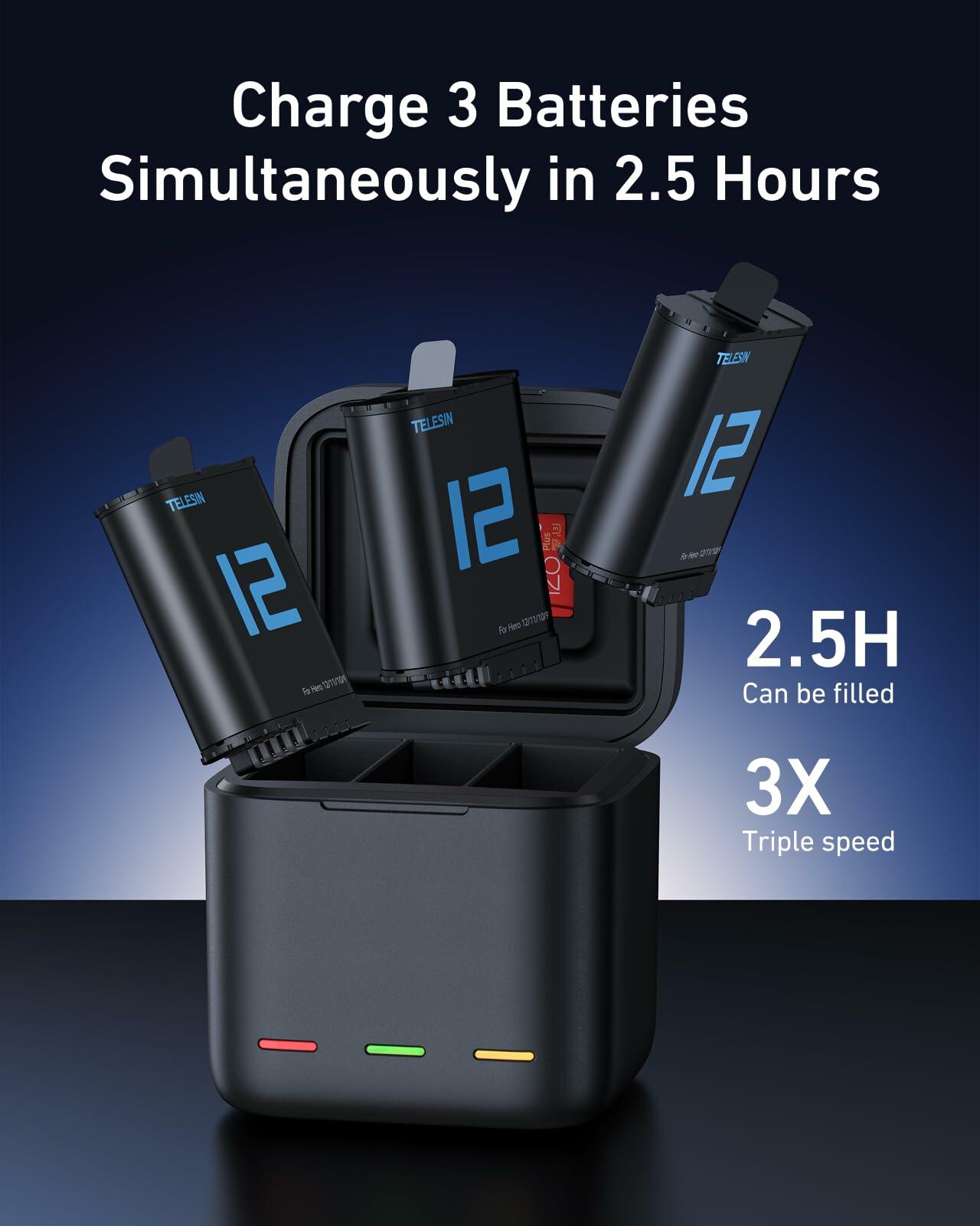 TELESIN Battery Charger for GoPro Hero 12,11,10,9