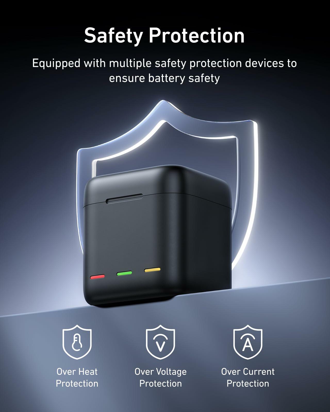 - Guaranteed Compatibility with Original GoPro BatteriesCertified for seamless use with Hero 9-12 Black batteries. Magnetic connectors ensure secure contact during charging, preventing interruptions caused by loose connections.