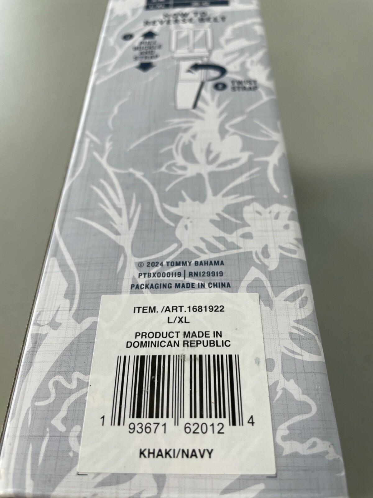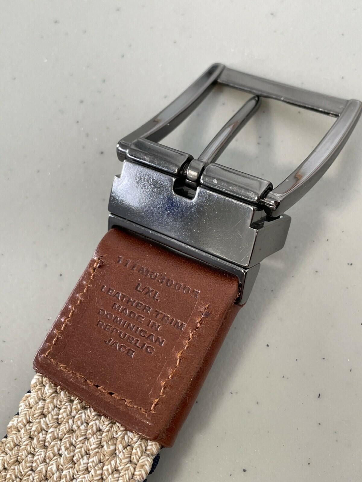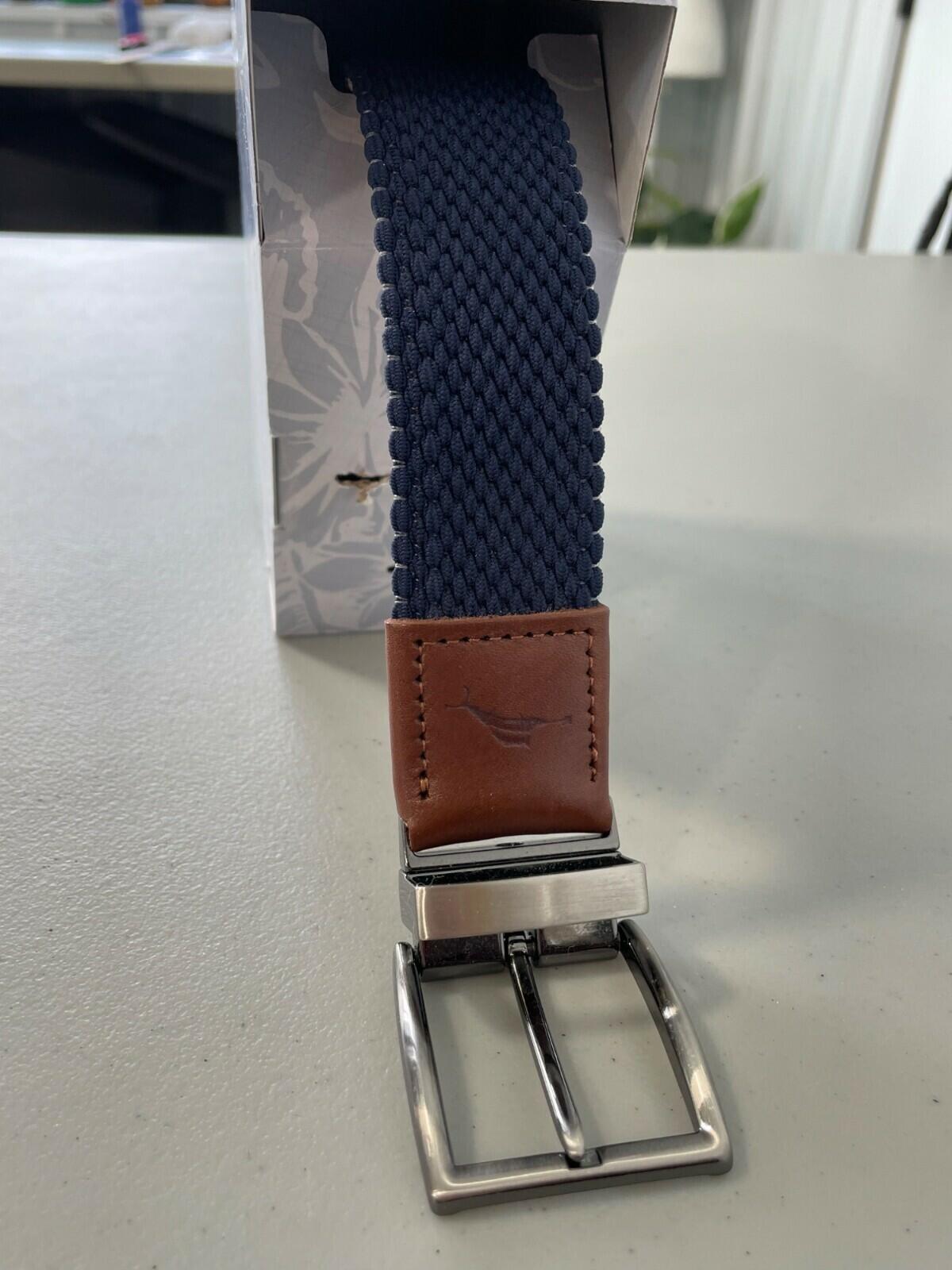 Tommy Bahama Reversible Stretch Belt Size Large/XL Navy Khaki Leather Trim NEW