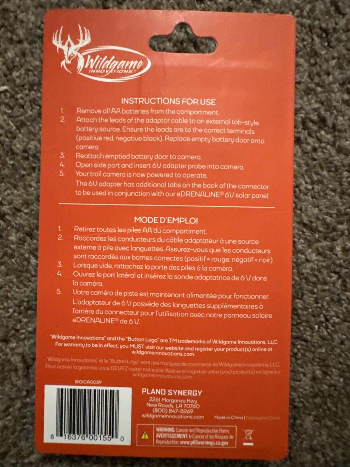 The Wildgame Innovations 6V Adapter Cable is a reliable and essential accessory for hunting enthusiasts. This cable is designed specifically for powering game and trail cameras, ensuring that your equipment stays charged and ready for action in the wilderness. With a sleek black design and a regular size fit, this adapter cable is perfect for streamlining your charging process and keeping your devices powered up for extended use in the field. Upgrade your hunting experience with the Wildgame Innovations 6V Adapter Cable.